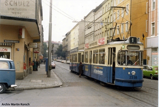 M3.64 2338 fährt im September 1978 am Reichenbachplatz zum Sendlinger Tor.
