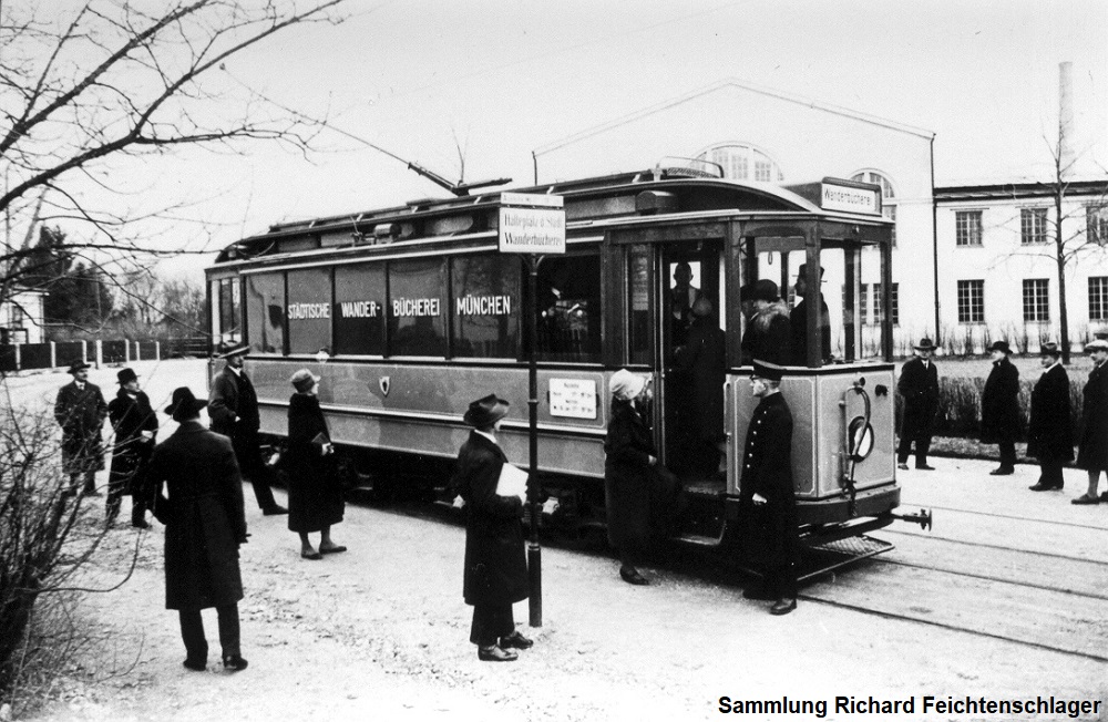 Der Triebwagen D1.6 Nr. 495 wurde 1912 durch die Stadt von der Firma Rathgeber gekauft. Da er ein Einzelstück war, wurde der schon 1927/28 zum Wanderbüchereiwagen Nr. 24 (Typ WB1.6, ab 1959 WB1.3) umgewandelt. Die Fenster verkleidete man mit Blech und stellte innen Bücherregale auf. Das Fahrzeug wurde weißblau gestrichen. Er war eine Rarität, da es solche Wagen weltweit nur noch in Budapest gab. Von 13. Februar 1928 bis 4. April 1970 war das Fahrzeug als städtische Leihbücherei nach einem festen Plan im Einsatz. Dabei wurden Abstellgleise als Standplätze genutzt. Als aber größere Reparaturen anstanden und zudem geeignete Abstellgleise immer weniger wurden, musterte man ihn aus.