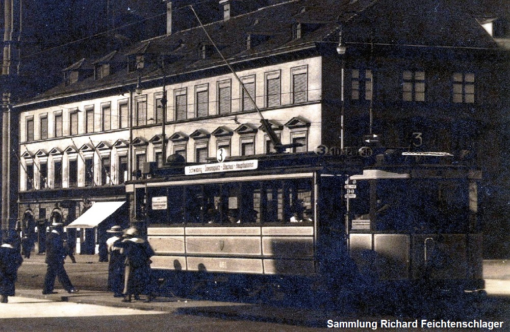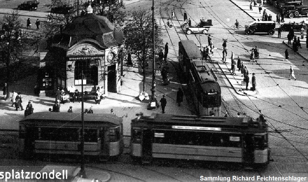 Ein Zug aus C-Triebwagen und c-Beiwagen passiert um 1926 den Karlsplatz